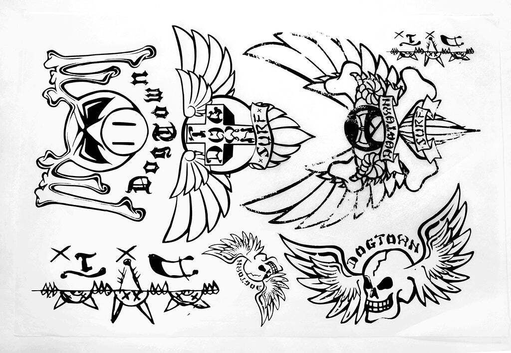 Dogtown Laminate Surfboard Sticker Assorted Graphics Black