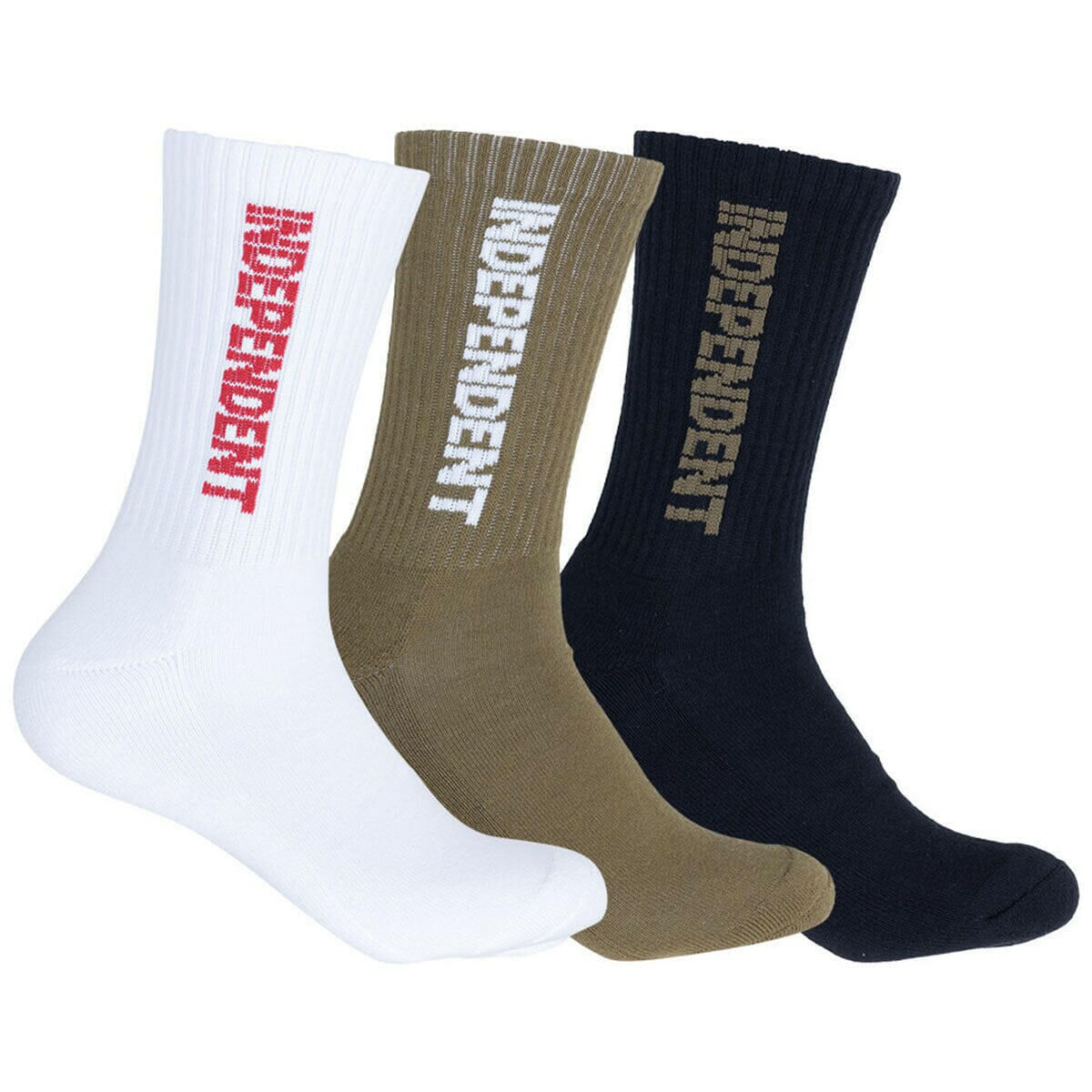 Independent Socks Grind Crew 3pk White/Gravel/Black Size 6-12