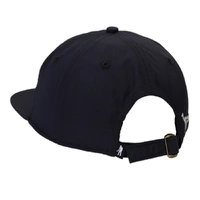 Pass~Port Lounge Service RPET Workers Cap in Dusty Black from range #47. The Pass~Port hat is part of the Pass~Port RPET program which features products made from 100% recycled plastic bottles (RPET polyester). The cap features a screen printed front & back, 5-panel construction with flat brim and strap back adjustment with antique brass buckle.
