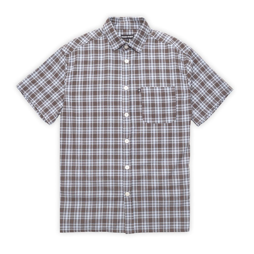 Pass~Port Workers Check Shirt from range #41. The check shirt is made from 100% cotton and features single pocket on front with recycled buttons. This check pattern is custom to Pass~Port and was created by the Pass~Port studio team.