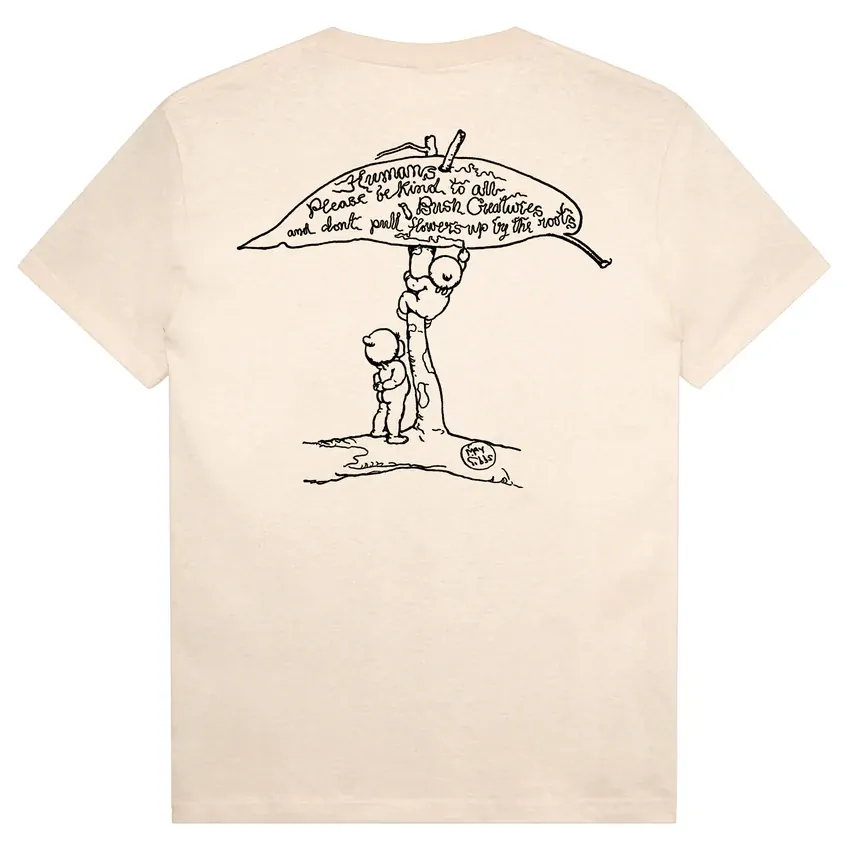 The Be Kind tee in Natural is made from 100% cotton and features a screen printed graphic on the front and back, finishing in the signature Pass-Port fit.