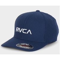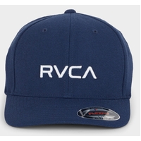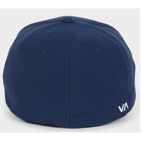 RVCA Hat Logo Flex Fit Navy Heather S-M 98% COTTON 2% ELASTANE Mens mid fit 6-panel Flexfit with Curved Visor. Front embroidered logo and VA embroidery at back. Body is 98% Cotton/2% Elastane.