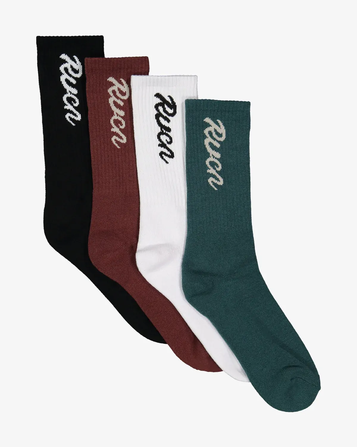 RVCA Socks Crew Seasonal 4pk Script Black/White/Green/Red