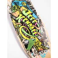 The Santa Cruz Skateboards Kendall Graffiti Reissue 9.69" x 29.85" deck features legendary Santa Cruz Jeff Kendall neon artwork and shape from the 80's on natural wood stain deck bottom with green stained deck top on his OG reissue shape with a 15" wheelbase. View "Details" tab for nose, tail lengths, concave and more.