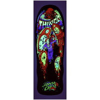 The Santa Cruz Stranger Things Grabke Max Melting Clock 9.7in x 29.4in deck features multicolor glow in the dark graphics on Claus Grabke's classic Melting Clock shape.
