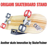 The Origami Skateboard Stand and Display is the latest invention from SkaterTrainer. A creative and minimalist design that is Engineered and manufactured in the USA. We really put a lot of thought into this skateboard floor rack to help make it sleek, minimalist, efficient, and durable. It is a simple one piece design that is elegant and stylish.  It folds up when not in use for compact storage and transport, and is easily assembled in seconds. It's like a dock for your Skateboard.