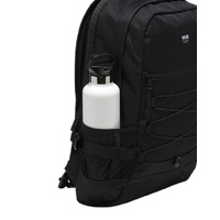 The Vans Original Backpack is a no-frills bag that is rugged and ready for anything you can throw at it. Made with fabrics that are recognized for their long-lasting durability and resistance to abrasion, tearing, and scuffs, this backpack comes equipped with a padded tablet compartment that lets you safely store your device, a waffle mesh back panel for comfort, and a stretch water bottle pocket on the side.