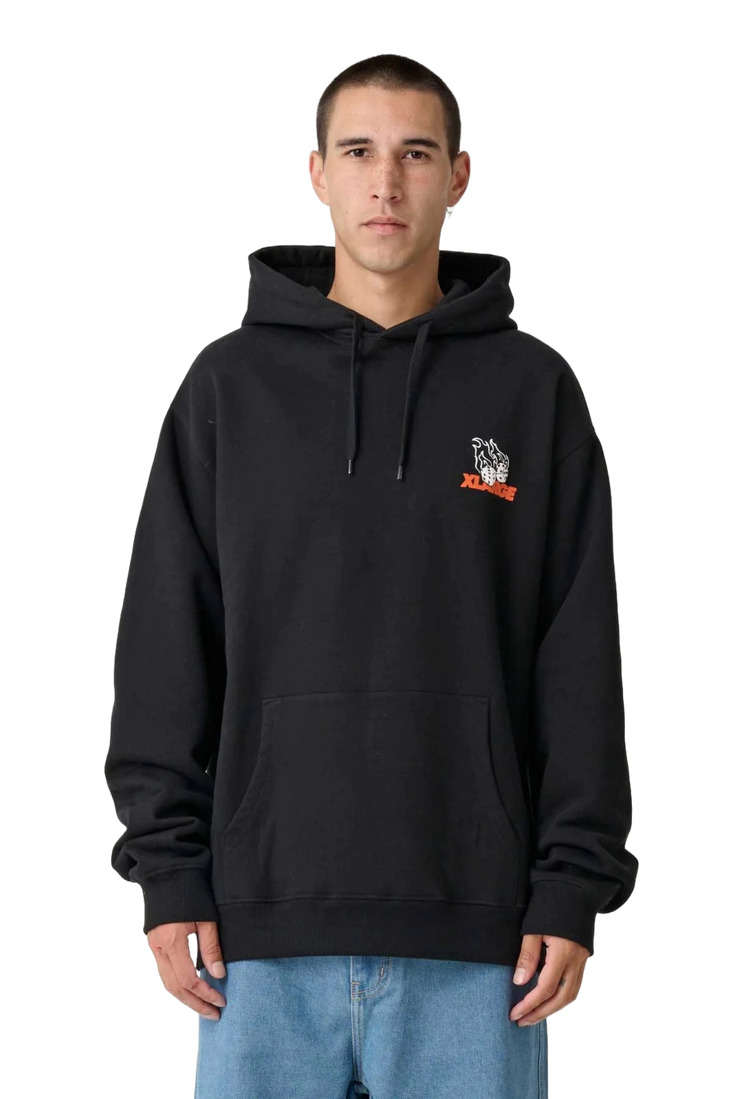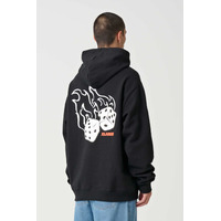The Fire Dice Hood in Ash Heather is a classic fit fleece hoodie.