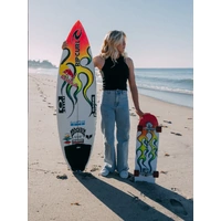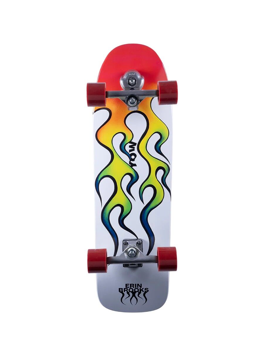 High Blaze 32” x 9.5” x 16.5”. A new old school-inspired shape with reduced dimensions for a better maneuverability. Featuring a double-kick with shorter wide nose and generous tail and high concave. Mounted on the YOW Meraki S5 surfskate system and 82A Ura wheels for a true surf experience.